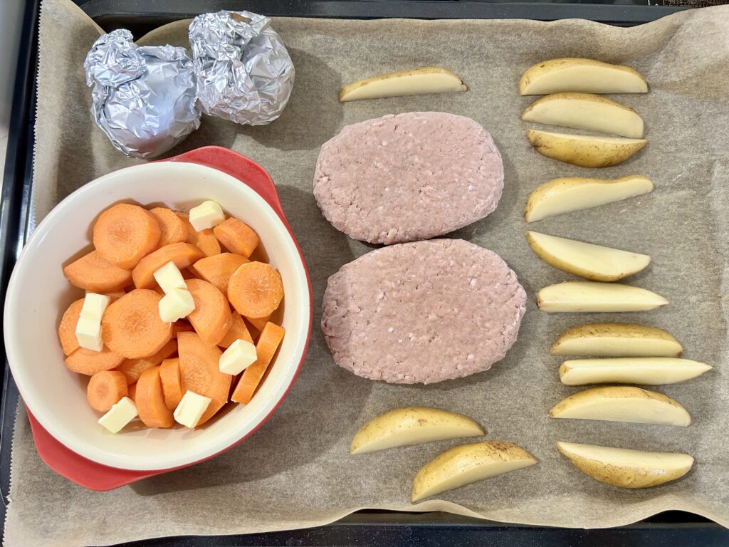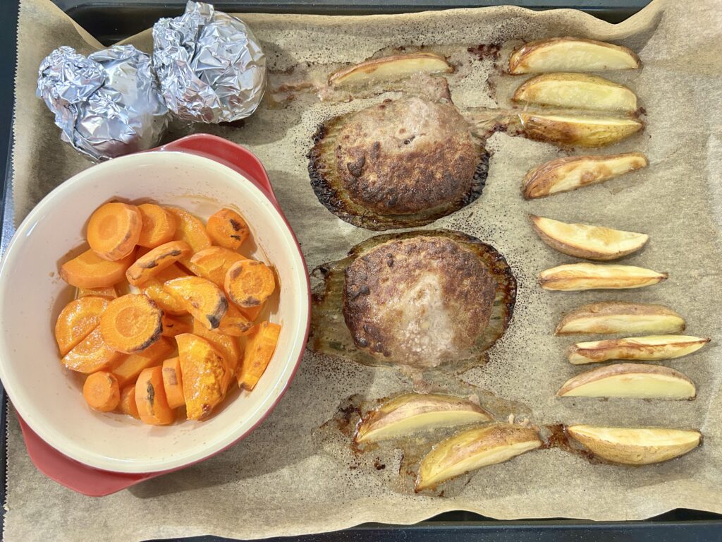 キッチンに立つ時間=主菜、副菜の材料を切る・下味付け+天板に並べてスイッチ押す+盛り付け